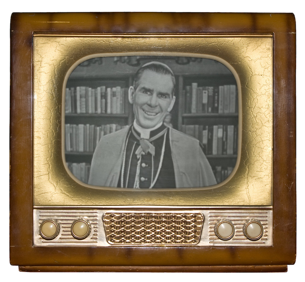 At the margins, whenever a minister begins to depart from the fundamentals of the faith, there was tentativeness. There was hesitancy and defensive posturing, an effort to explain one’s beliefs alongside those more commonly accepted. Confronting the enduring (and inaccurate) accusations made against the Roman Catholic Church, American Bishop Fulton J. Sheen became a leader in religious broadcasting with his clear and methodical approach to dispelling false claims made in The Fundamentals and by its broad audience. For 20 years as “Father Sheen”, later Monsignor, he hosted the night-time radio program The Catholic Hour on NBC (1930–1950) before moving to television with Life Is Worth Living (1952–1957) and The Fulton Sheen Program (1961–1968). Sheen’s success was how he differentiated his programs, patiently working through the Catechism of the Catholic Church instead of offering extemporaneous preaching. Sheen demystified Catholicism by anchoring the faith in philosophy and reinforcing Americanism. Though Sheen was doing something different than other broadcasters who continued to repeat The Fundamentals, he spent decades responding to the spurious claims that were made against Catholicism, asserting its Americanism, explaining the biblical roots of practices and theology, and exhibiting a tremendous amount of patience toward critics.